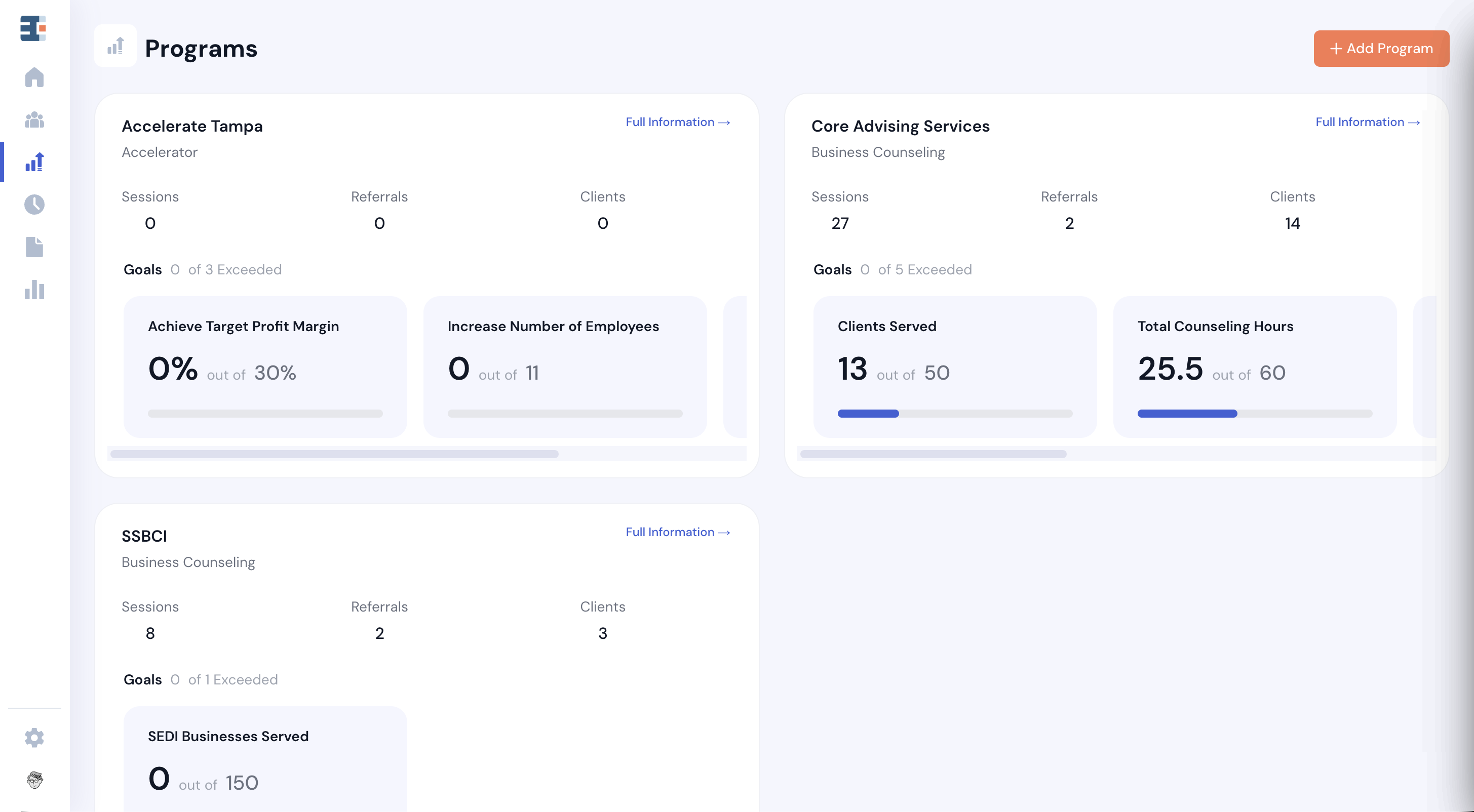 Sessions and referrals are both considered service activities in Catalyzer. Service activities are how clients and their businesses officially receive services in the platform—and how those services can be attributed to the programs you run.